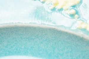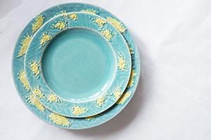 中には、釉薬と素地の間にできたヒビ模様の「貫入」が見られるものもあります。またミモザの黄色い釉薬はひとつひとつ筆で仕上げている為、塗りムラが見られるものがあります。お任せ発送となりますので、予めご了承ください。