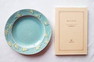 また平らな作りを活用して、カップやグラスなどの”ソーサー”としてもお使いいただくのもおすすめです。私はミモザが咲く湖畔に白鳥がいるような…そんなイメージで