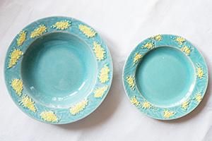 「レイクグリーン ミモザの深皿 中」もあります。2つを揃えて、盛り皿・取り皿として使うのもおすすめです。