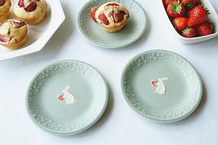 「薄緑(しっとり) うさぎと苺のプレート」と組み合わせて使うとより素敵な雰囲気が広がり…うさぎが苺畑でとっても美味しそうな苺を見つけた…そんなストーリーが思い浮かびます♪
