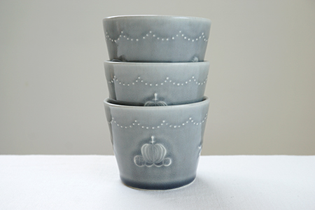 いつもよりちょっと青みがかった焼き色になった今回の「パールストーングレー メリーゴーラウンドのカップ」は、元々クラシカルなデザインが、より品良く素敵に見える気がして、実はとってもお気に入りです。