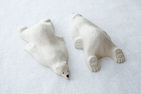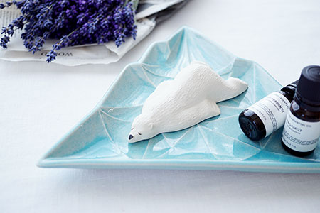 手足を投げ出してぐでーんと眠る姿が、なんともかわいらしく癒されます。窓際や棚の上にちょこんと置くだけで十分かわいい存在ですが、釉薬をかけていないので、アロマオイルをたらしてアロマストーンとしてもお使いいただけます!シロクマ好きのご友人への贈り物としてもいかがでしょう♪
