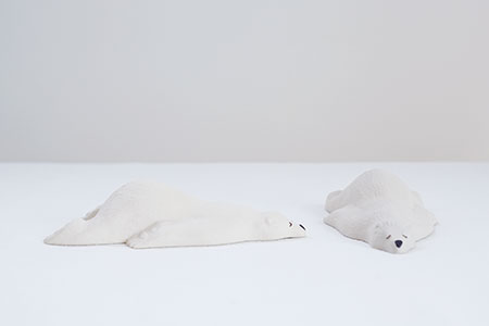 すやすやと寝ているシロクマの置物、「おやすみシロクマ」です。2023年に、シロクマの器ばかりを集めた企画『シロクマフェス』でのプレゼントとして大変ご好評をいただいたので、今回あらたに目や鼻を黒く着彩した形でリニューアルしました!
