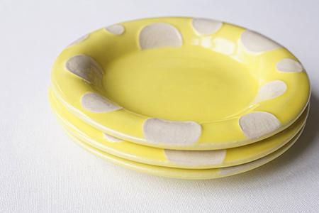 「浮き輪小皿 水玉」は泥しょう作りという方法で生地を作っています。