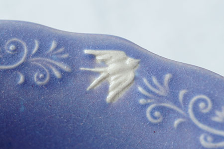 色はかわいらしい青紫色の「プルーン」。ツバメには白い着色を施しました。鉄点や青い点が全体にみられます。