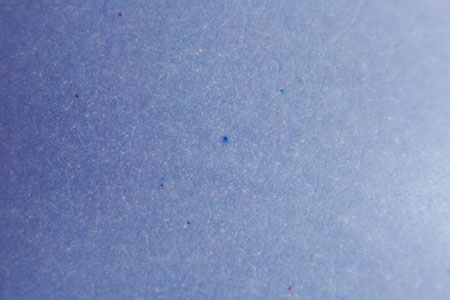 素地と釉薬の間にできたヒビ模様の「貫入」が見られます。青点や鉄点も見られます。また、釉薬のムラが感じられるものもあります(写真下2枚目)。