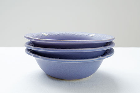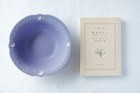 「プルーン」と名づけたやわらかな青紫色に、ツバメの模様がぐるりとデザインされたデザートボウル。