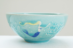 サイズ的には、女性や小学校の中~高学年の子どもたちにちょうどいい大きさです。ご飯茶碗としての用途に限らず、お鉢的に副菜やおかずにも使えます。マーメイドが暮らすキラキラとした海の世界を連想させる飯碗にご飯を盛りつけるだけで、気持ちが弾みそうです♪