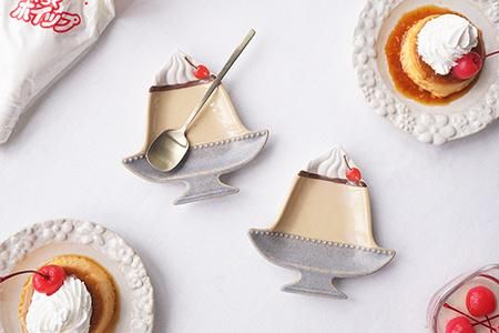 外で食べるプリンもとっても好きだけど、お家で手作りするプリンもやっぱり好き。甘さを調節したり、いい卵を使ってみたり、カラメルを苦く仕上げたり…自分の好みのものができるからついつい作りたくなってしまう焼き菓子です。そんなお家プリン…喫茶店のプリンのように “固め” に仕上げた日には、この「プリンの小皿」をカトラリー置きとして添えてみたらきっと楽しい!と思い試してみると、プリン好きにはたまらないプリンだらけのおやつ時間になり至福、そして眼福でした♡ そして喫茶店で出て来そうな脚付きグラスに入ったなんともレトロ感漂うデザインなので、生クリームの袋に書かれたちょっと懐かしい字体の「ホイップ」の文字との相性も楽しめた気がしました♪