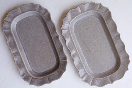 「グレージュ(しっとり) 稜花長方皿」はたたら作りで製作しています。