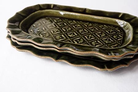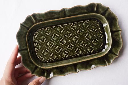 ベルベットグリーン 稜花長方皿 classic flower pattern
