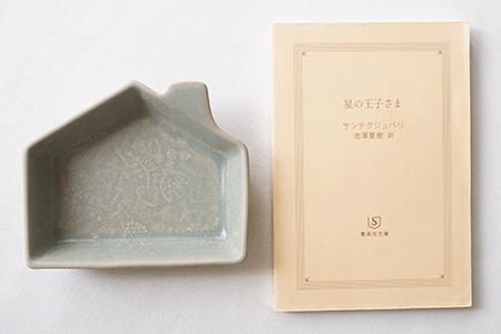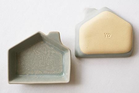 お家の形の小鉢に草や花の刺繍模様を施しました。ひと針ひと針丁寧に縫ったような繊細な刺繍模様がとっても素敵で、まるで絵本に出てきそうなお家です。