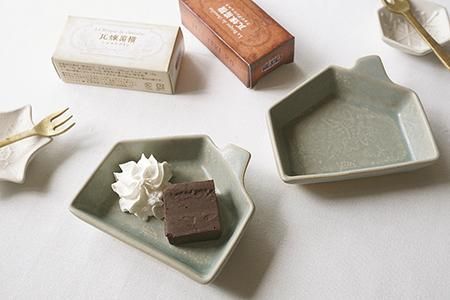 家族から横浜旅行のお土産で「横浜煉瓦」というスイーツを貰ったのですが、横浜名所の赤レンガ倉庫をイメージさせる煉瓦をモチーフにしたケーキがこの「薄緑(しっとり) 刺繍模様のお家の小鉢」と似合いそう!と思い、生クリームを添えておやつに♪ 薄緑(しっとり)の落ち着いた色合いが、どこか雪化粧をしたお家のようで、思わず冬の景色を想像してしまいました。