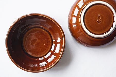 色はツヤのある「あめ色」でほっこりとした印象に仕上げました。焼き色や模様の出方は一客一客で異なり、模様がぼんやりとしているものもあります(写真下3枚目)。また横から見ると、釉薬の流れや溜まりが感じられる部分があります。お任せ発送となりますので予めご了承ください。
