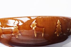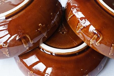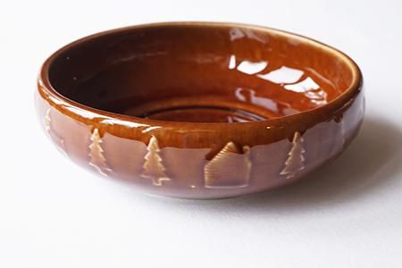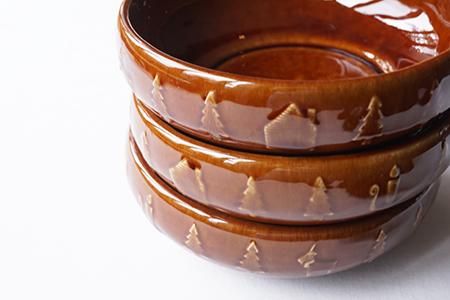 「あめ色 山小屋のスープボウル 大」は泥しょう作りという方法で生地を作っています。