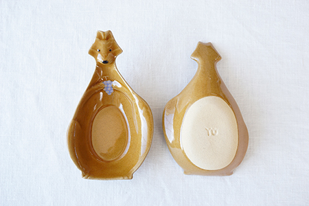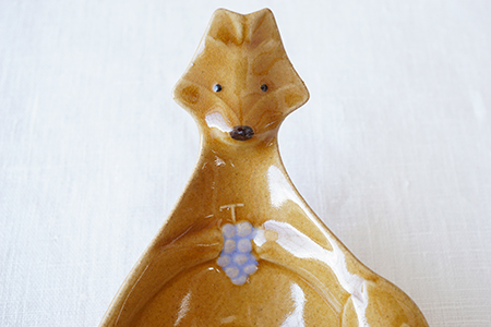 ちょっと変わった形ですが、意外と使いやすく、頭の部分が持ち手になるのでテーブルに運ぶ際にも持ちやすいです。副菜やフルーツをちょこっとのせたい時にちょうどいい大きさで、ほっこりと可愛らしいキツネがテーブルに温かな雰囲気を運んでくれそうです。キツネ好きの方にはもちろん、こどもたちにも楽しく使ってもらえると思います♪