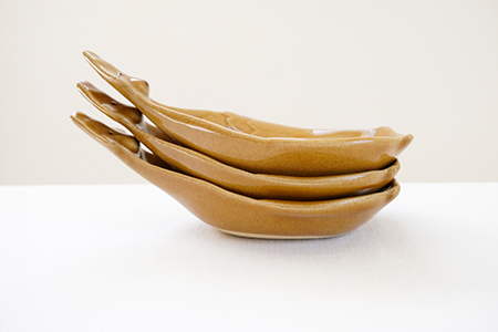 「たたら作り」とは、簡単に言うと…1、良く練った土を、スライス状にする 2、その粘土を石膏型の上にのせて成形する という作り方。なので、ろくろ作りと違って、楕円や四角、花形など色々な形を作ることができます。