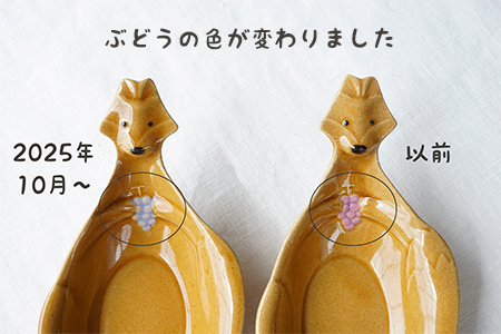 お菓子をのせてお茶のおともにしてもいいですし、お醤油などのタレ皿としても活躍してくれます。キツネが大事に抱えているぶどうに合わせて、フルーツをのせて使うのもおすすめです!