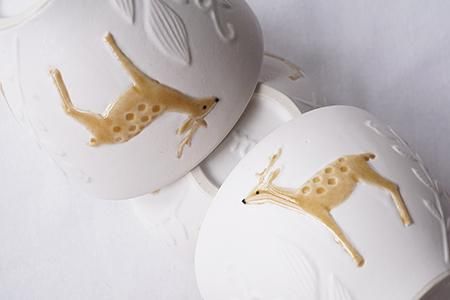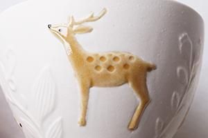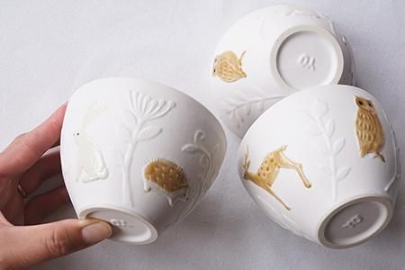 「冬の森の動物たちのまるカップ」は圧力鋳込み製法という方法で生地を作っています。