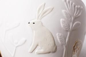 色はツヤのない「ホワイト」。さらにウサギは白、その他の3匹はキャメル、目や鼻には黒い釉薬で着彩を施し、可愛らしい印象に仕上げました!