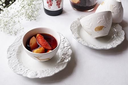 冬の森の風景をイメージして配色したこの「冬の森の動物たちのまるカップ」は、季節感を食卓に広げてくれるアイテムになりそうです。先日、美味しい赤ワインを使ってホットサングリアを作ったので、このカップで楽しんでみることに♪