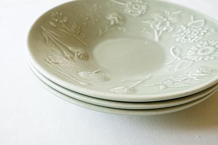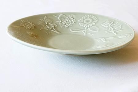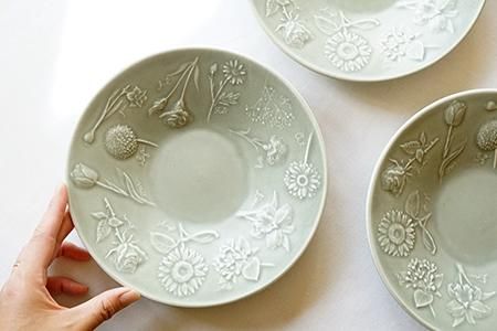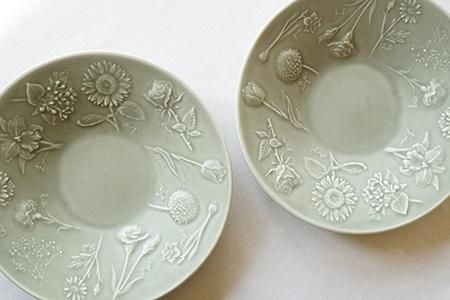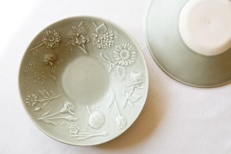 「花図鑑の深皿」は圧力鋳込み製法という方法で生地を作っています。