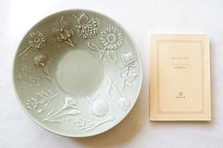 大きく広いリムに、1年の12か月に割り当てられた月ごとの「誕生花」をデザインした深皿です。
