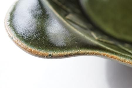 「ベルベットグリーン ツリーパターンの手付き丸皿」はたたら作りで製作しています。