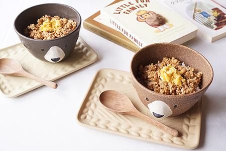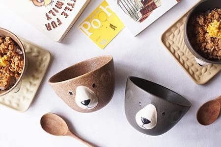 くまをデザインしたほっこり感溢れる器は子どもたちの器としてもぴったりです。2種類あるので、兄弟で色違いにするというのもいいかもしれません。サイズ感は、幼児〜小学生低学年の子どもたちが食べるうどんや丼ものをちょうどよく盛りつけられるので重宝すると思います。